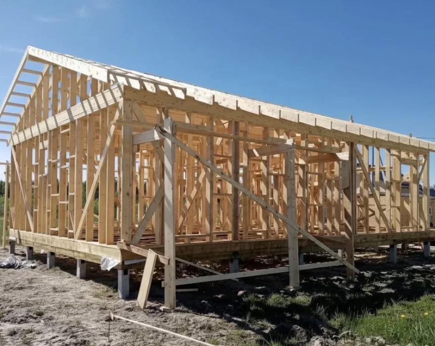 - каркас дома с внешней отделкой. Этот вариант отлично подходит для тех, кто хочет строить дом поэтапно, так как строительство дома можно приостановить на любое время, это самый недорогой вариант.