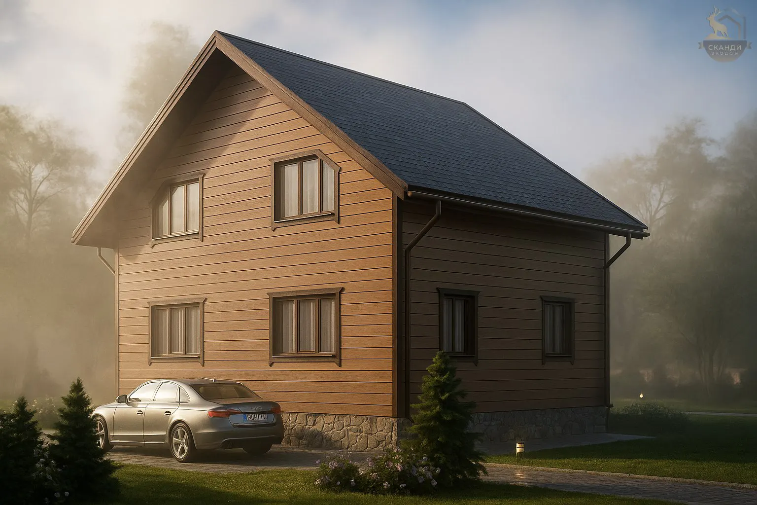 Двухэтажный каркасный дом с балконом – уютный коттедж для загородного проживания