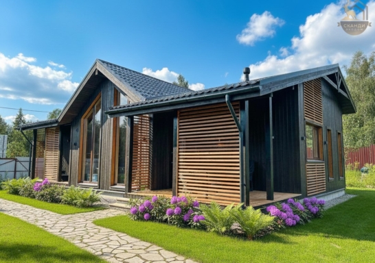 Каркасный дом барнхаус с панорамными окнами и сауной, 97 м²