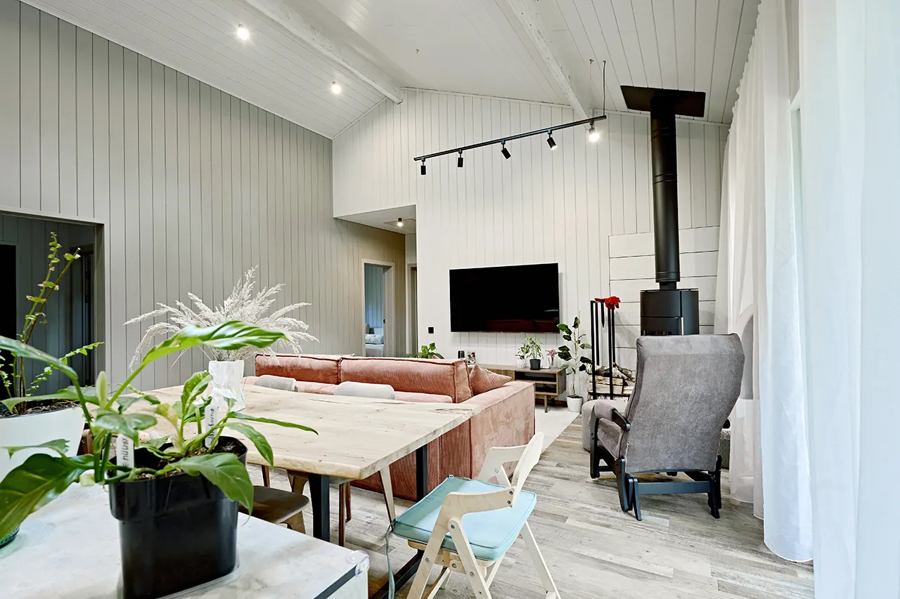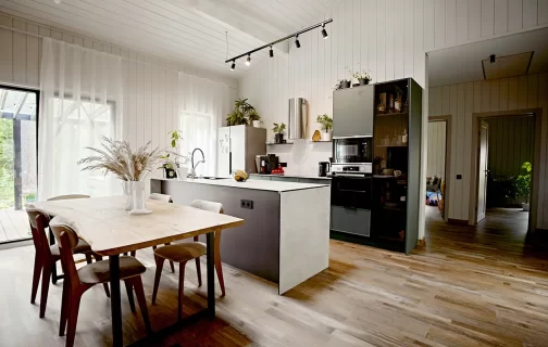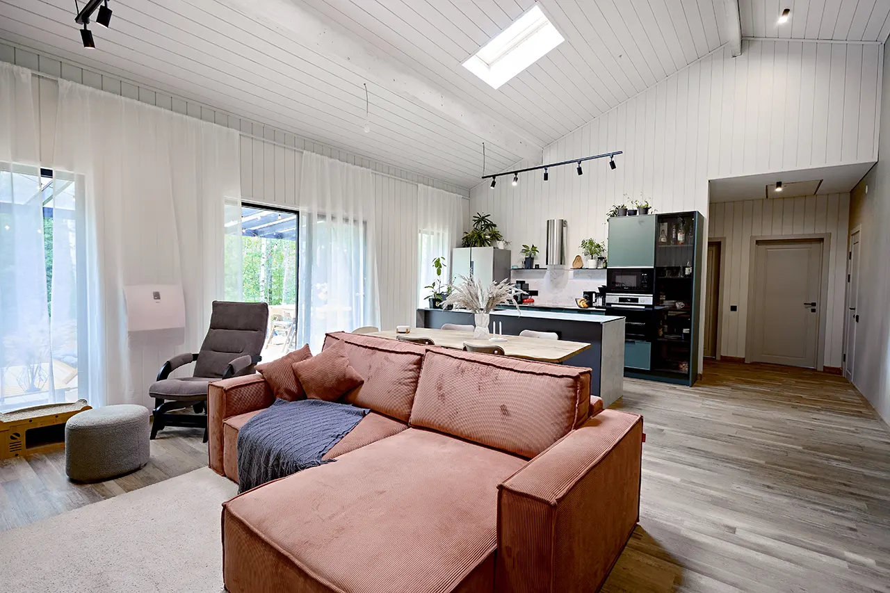 Владельцы, молодая семья, исполнили свою мечту — жить с ребенком за городом. При этом в тепле, комфорте и эстетичном пространстве со стильным современным ремонтом.