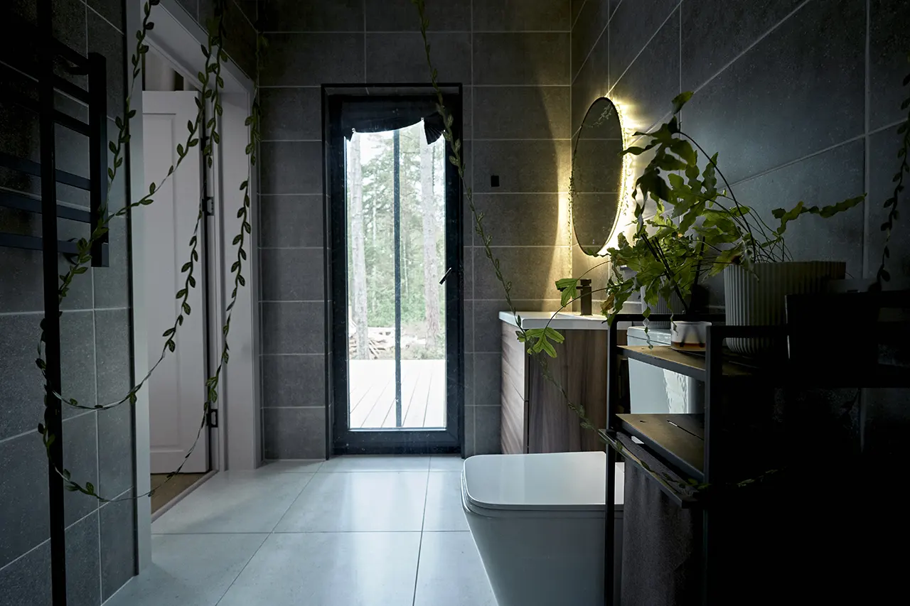 В доме много окон, в том числе панорамных. Каждое помещение всегда наполнено приятным естественным светом. А просыпаясь утром, владельцы видят через стекло ухоженный сад. Такое начало дня становится залогом отличного настроения!
