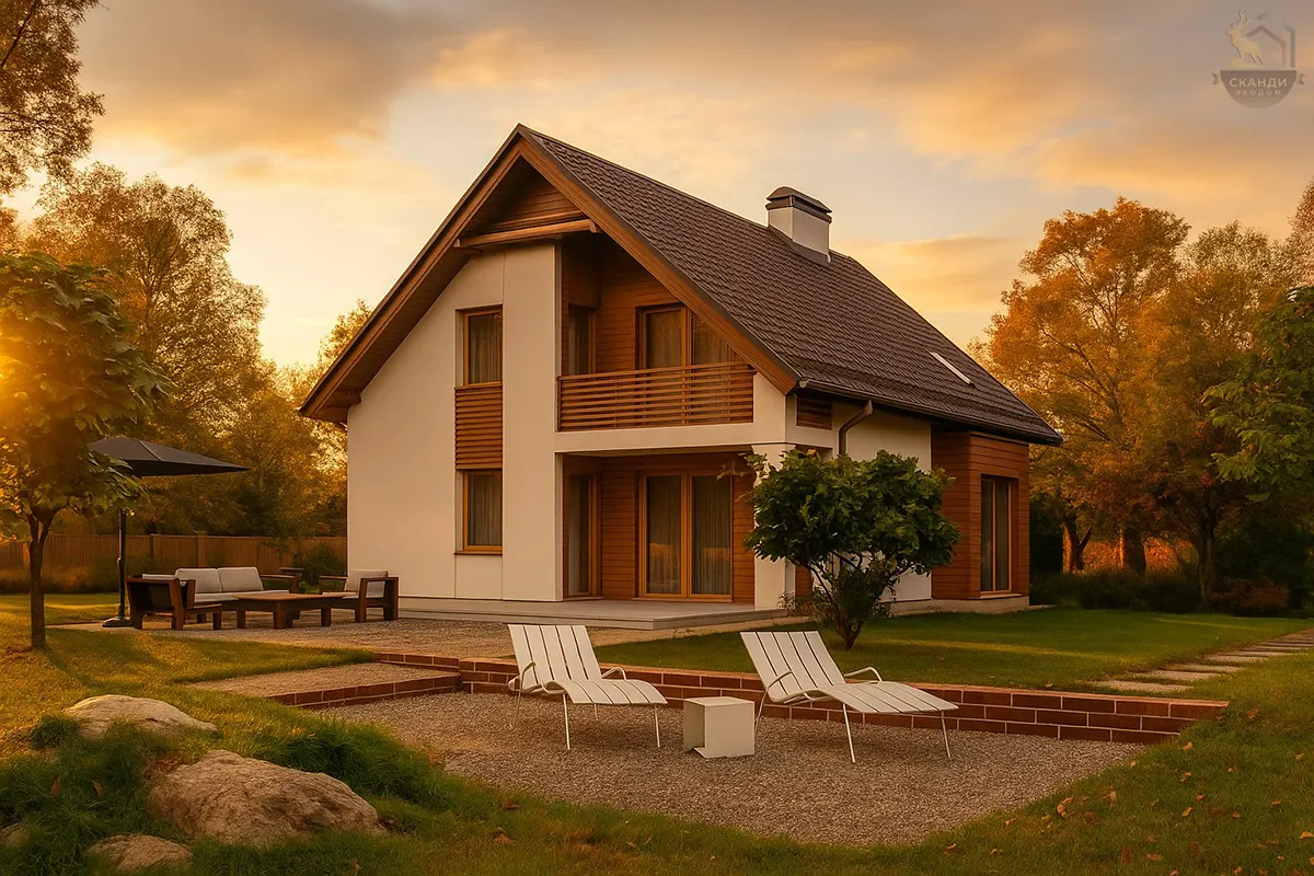 Двухэтажный каркасный дом с мансардой, 194 м²