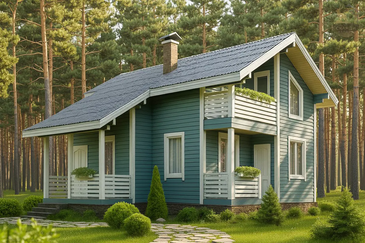 2-х этажный каркасный дом с двумя террасами КД-300 идеально подойдет ценителям традиционного дизайна, ведь коттедж исполнен в классическом стиле. Это отличное решение для круглогодичного проживания семьи, а также для сдачи в аренду. Здесь свободно разместится семья, имеющая в составе 3-4 человека. Планировка жилья будет особенно удобна для тех, кто проводит много времени дома, ведь в помещении выделены зоны для работы и отдыха.