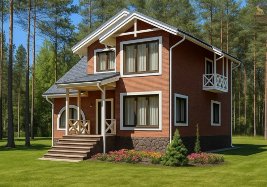 Двухэтажный каркасный дом в стиле Барнхаус по проекту КД-460 — идеальное решение для тех, кто ценит минималистичный стиль и практичность современной архитектуры. Лаконичная внешняя отделка, асимметричная форма строения, большие окна на главном фасаде, крытая терраса и балкон: КД-460 не только красив, но функционален. Площадь строения составляет 188 м², что позволяет предложить уютные и просторные помещения для семьи из 3-5 человек.