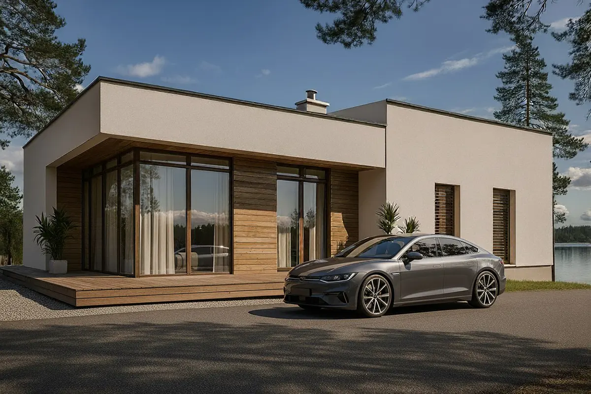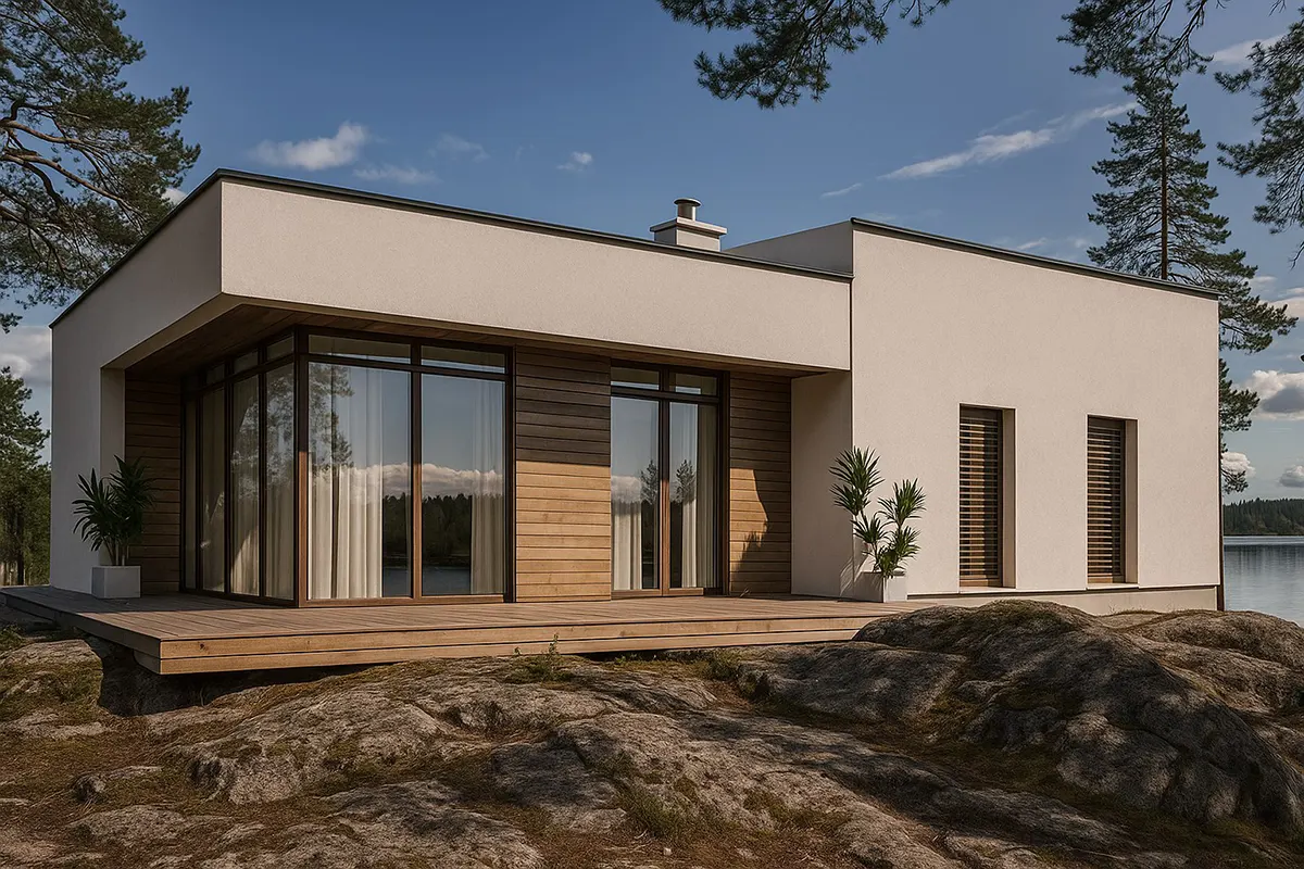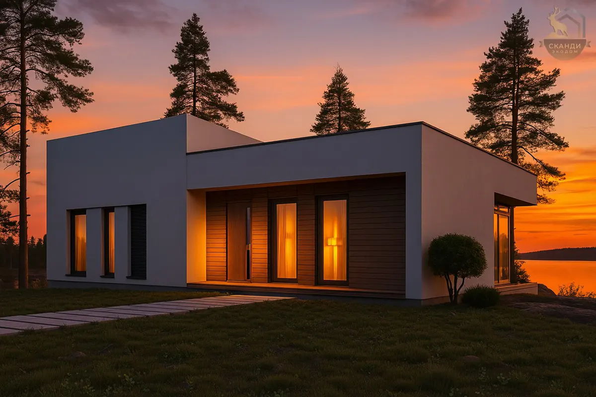 Каркасный дом с плоской крышей – популярный стиль загородного жилья в Ленинградской, Московской и Новгородской областях и является одним из самых доступных видов коттеджей для постоянного проживания. Компания «Сканди ЭкоДом» предлагает готовые типовые проекты коттеджей из каталога и разработку особняков по индивидуальным пожеланиям. Изменения в планировку комнат и коммуникаций, схему расположения и размер окон и дверей для типовых проектов выполняются безвозмездно. Вид фундамента жилья, материалы для внешней и внутренней отделки заказчик может выбрать самостоятельно. При заключении контракта на строительство коттеджа предоставляются 3 доступные комплектации: каркас с внешней отделкой; внешней отделкой с утеплением; каркасный дом с плоской крышей «под ключ». В зависимости от выбранной комплектации, вида фундамента, отделки, площади и этажности жилья выполняется расчет стоимости работ и смета на материалы. Итоговая сумма прописывается в договоре и впоследствии не меняется.