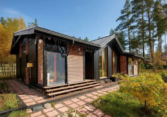 Современный и стильный коттедж в стиле барнхаус с сауной