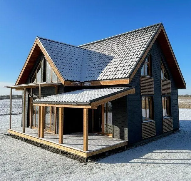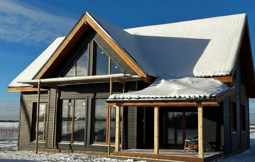 Дом строился всего 4 месяца. По запросу будущих владельцев перед возведением жилища мы изменили референсный проект — уменьшили площадь здания на 20 квадратных метров. Чертеж скорректировали бесплатно. Вы также можете выбрать проект из каталога, и мы внесем в него правки в соответствии с Вашими пожеланиями. Также поможем оформить оплату в комфортном для формате: ипотека, кредит, использование средств маткапитала.