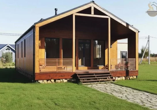 Каркасный дом барнхаус с панорамными окнами и сауной