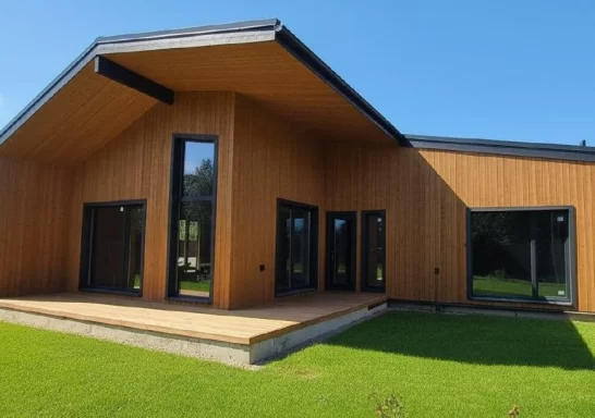 Каркасный дом барнхаус с панорамными окнами и сауной