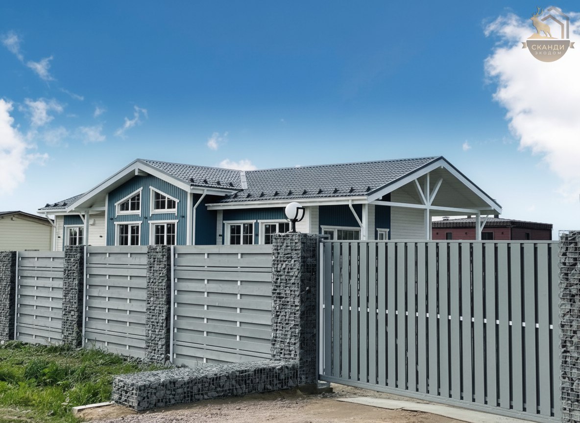 Одноэтажный каркасный дом со вторым светом строили по индивидуальному проекту и сдали заказчику в июне 2021 года. Стильный коттедж стал для семьи клиента альтернативой городской квартире. Дом расположился всего в 20 км от Петербурга в поселке Поляны-2 (Выборгский район).