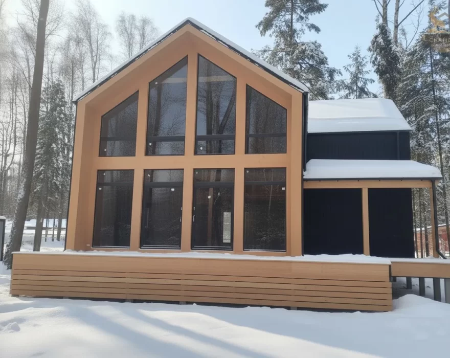 Угловой барнхаус с панорамным остеклением