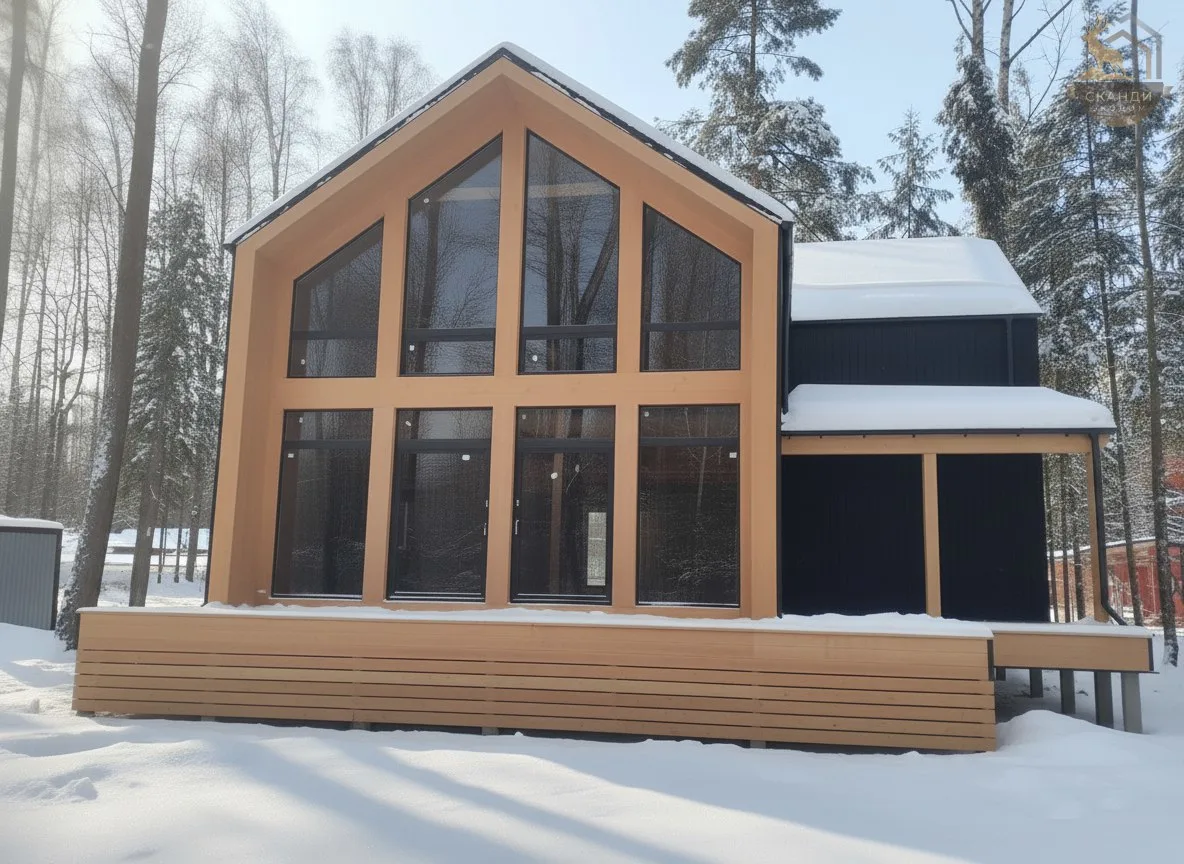 Угловой барнхаус с панорамным остеклением